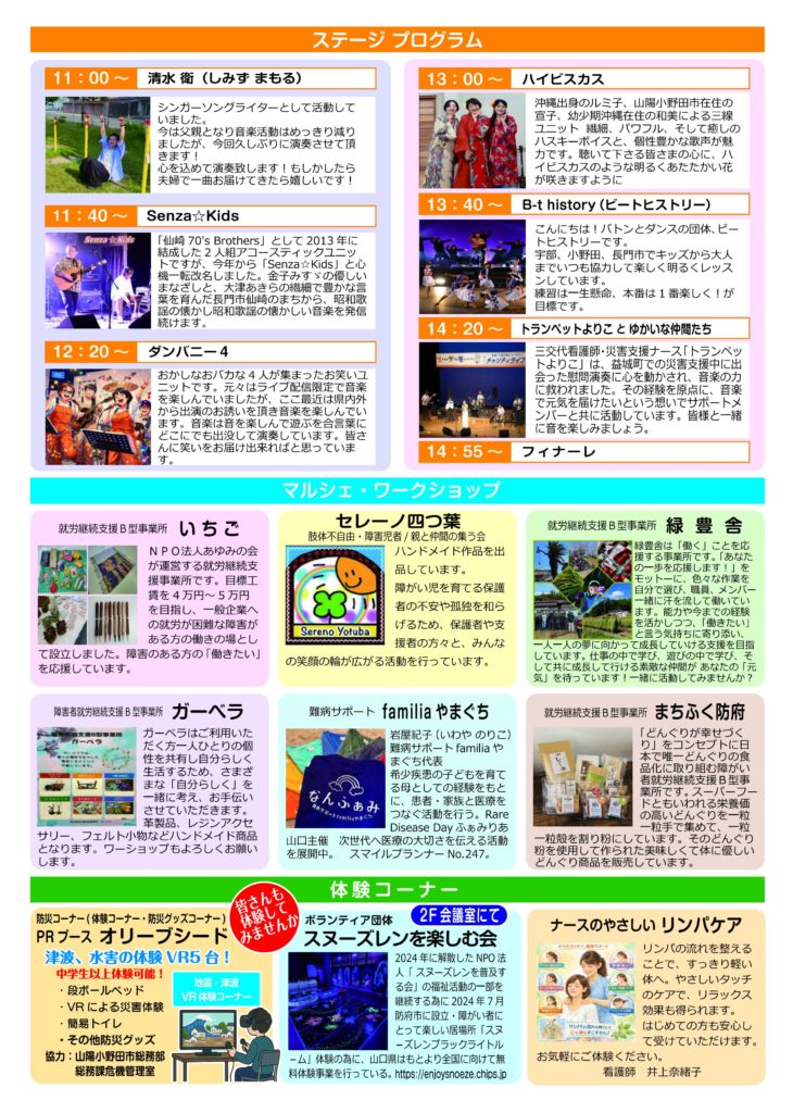 2026.5.9(土)チャリティライブのイベントでスヌーズレン体験出来ます 投稿日 2026年3月10日 著者 staff01 カテゴリー News カテゴリー イベント 三交代の看護師をしながらトランペット演奏をしてみんなに笑顔を届ける活動をしておられる「トランペツトよりこ」様からスヌーズレン体験の申込みが有り5月9日(土曜日)にスヌーズレン体験を開催します。 会場は山口県小野田市のAスクウェアの2階会議室です。 今回のチャリティライブのイベントでのマルシェ・ワークショップは障害者就労継続支援B型事業所や障害者支援の事業所メインです。 詳細はチラシをご覧願います。 2026.3.10 Today's Visits: 28Today's Visitors: 24Last 7 Days Visits: 239Last 30 Days Visits: 1,231Total Visits: 101,825Total Visitors: 44,762